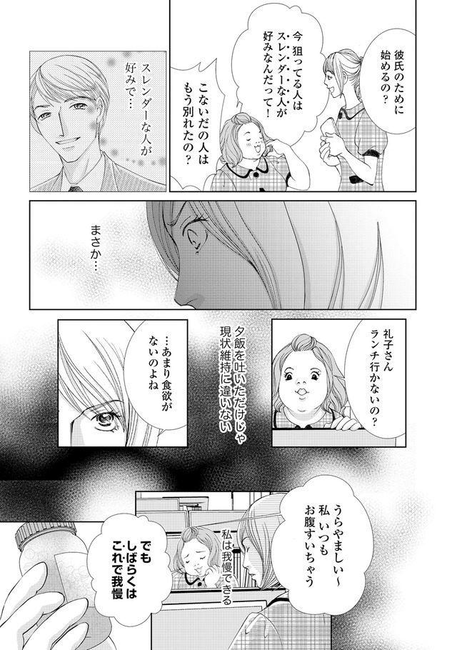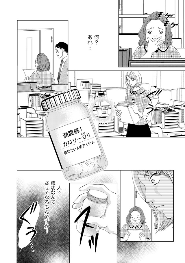 同僚のななみは、仕事ができず体型も自堕落。それなのに男が切れないことにイラつく主人公の礼子。ななみが礼子の想い人である上司を狙ってダイエットを始めたと知り、礼子は「あいつより絶対スリムに…!」という執念でサプリを荷重接収することに。女性の執念と嫉妬が導く衝撃の結末とは?