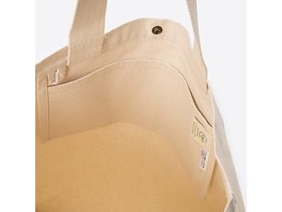 手に持っても、肩にかけても「ちょうどいい」長さで使いやすい! 内側には小物の連結に便利なループと、ポケットつき。オーガニックコットン素材のトートバッグ