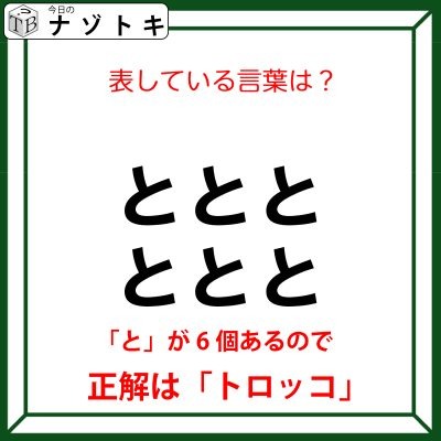 そうです。「と」が「6個(ろっこ)」で「トロッコ」です!正解は「トロッコ」でした。