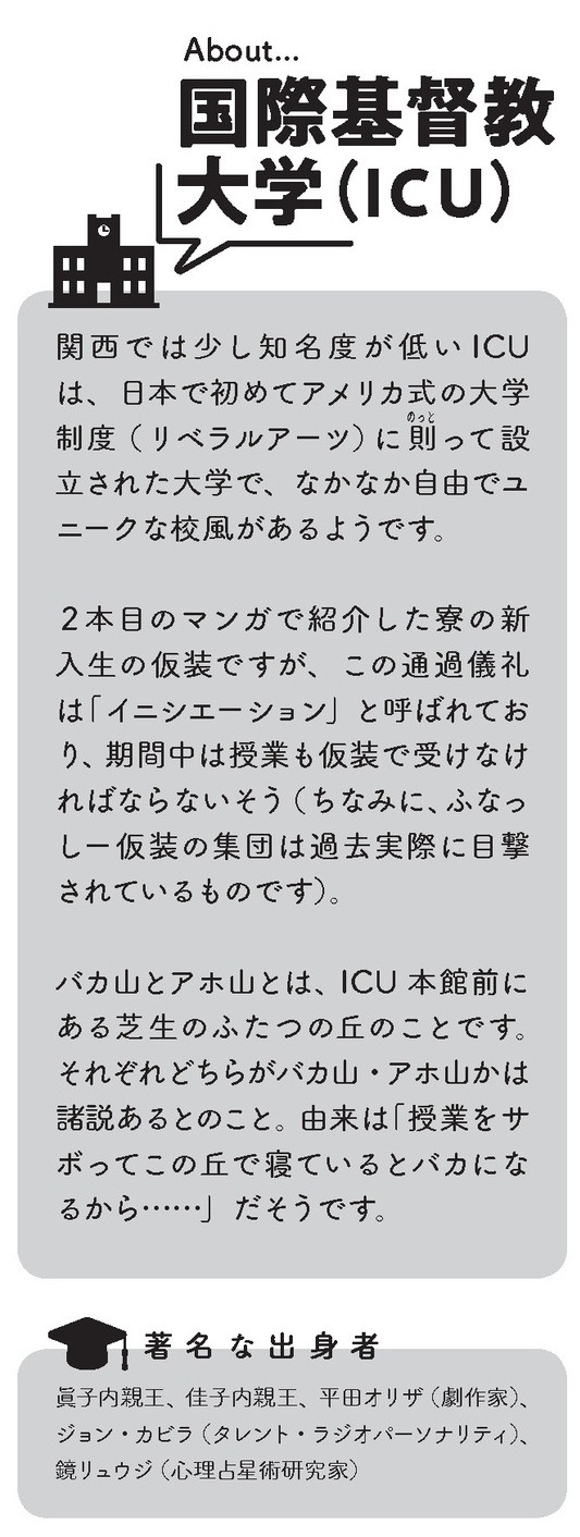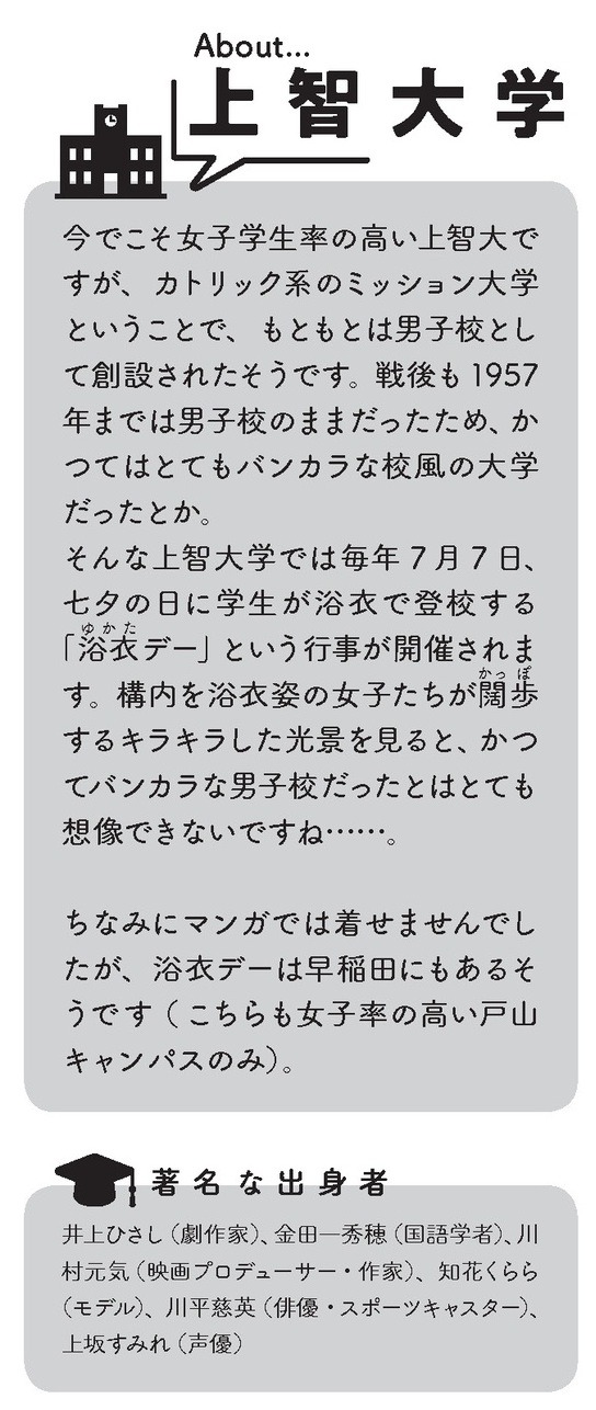 どの大学がどんな“クセ”を持つ? 首都圏・関西の国公立から私立、旧帝・理系・女子大・芸術大まで計70校をユニークに擬人化。ブログで話題を呼んだ連作が大幅加筆&描き下ろし多数で待望の書籍化。志望校や出身校の“あるある”を探してみよう!学風や学部、学食、キャンパス事情まで全方位の“あるある”ネタ満載。受験生も卒業生も楽しめる読み応えの一冊。