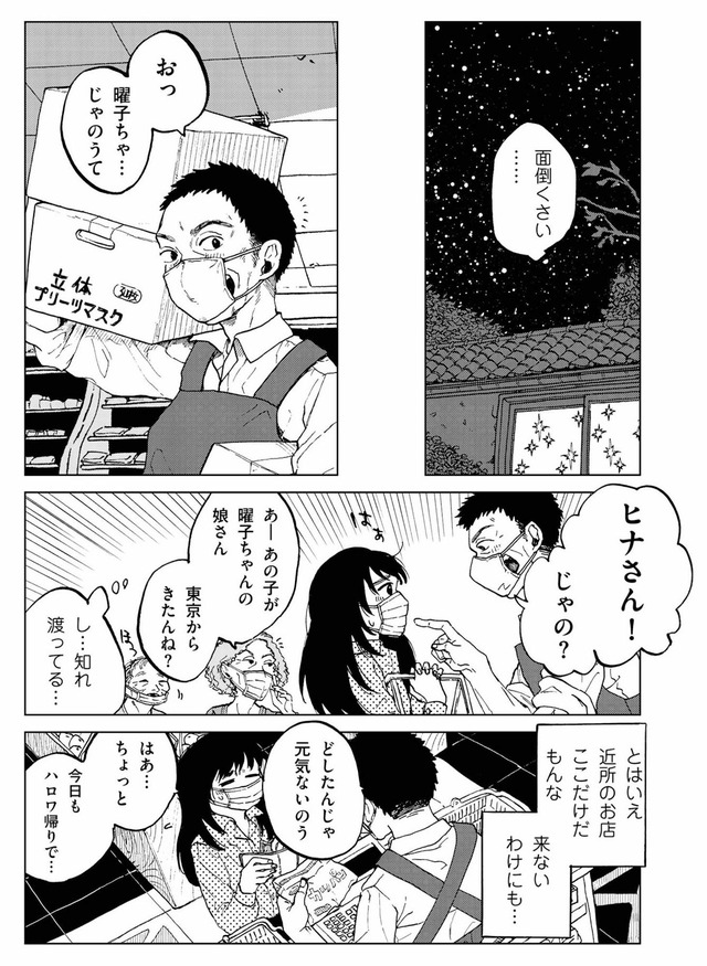 新型ウイルスが猛威を振るう、先行きの見えない非常事態下。日常や職を失い路頭に迷っていた鈴置ヒナは、暮らし慣れた東京から、かつて祖父が暮らしていた田舎へと転居する。