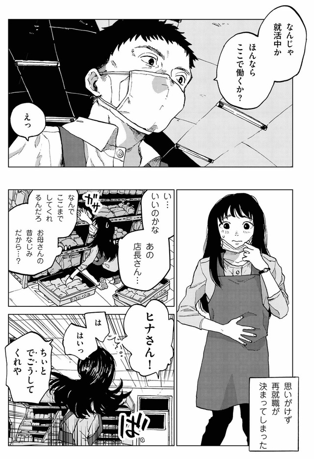 職探しもままならぬ中、途方に暮れていたヒナは、「母の昔なじみ」という個人商店店長・土井田に雇われることになる。慣れない仕事、慣れない言葉、慣れない生活…すべてが今までと違う暮らしに戸惑う毎日。