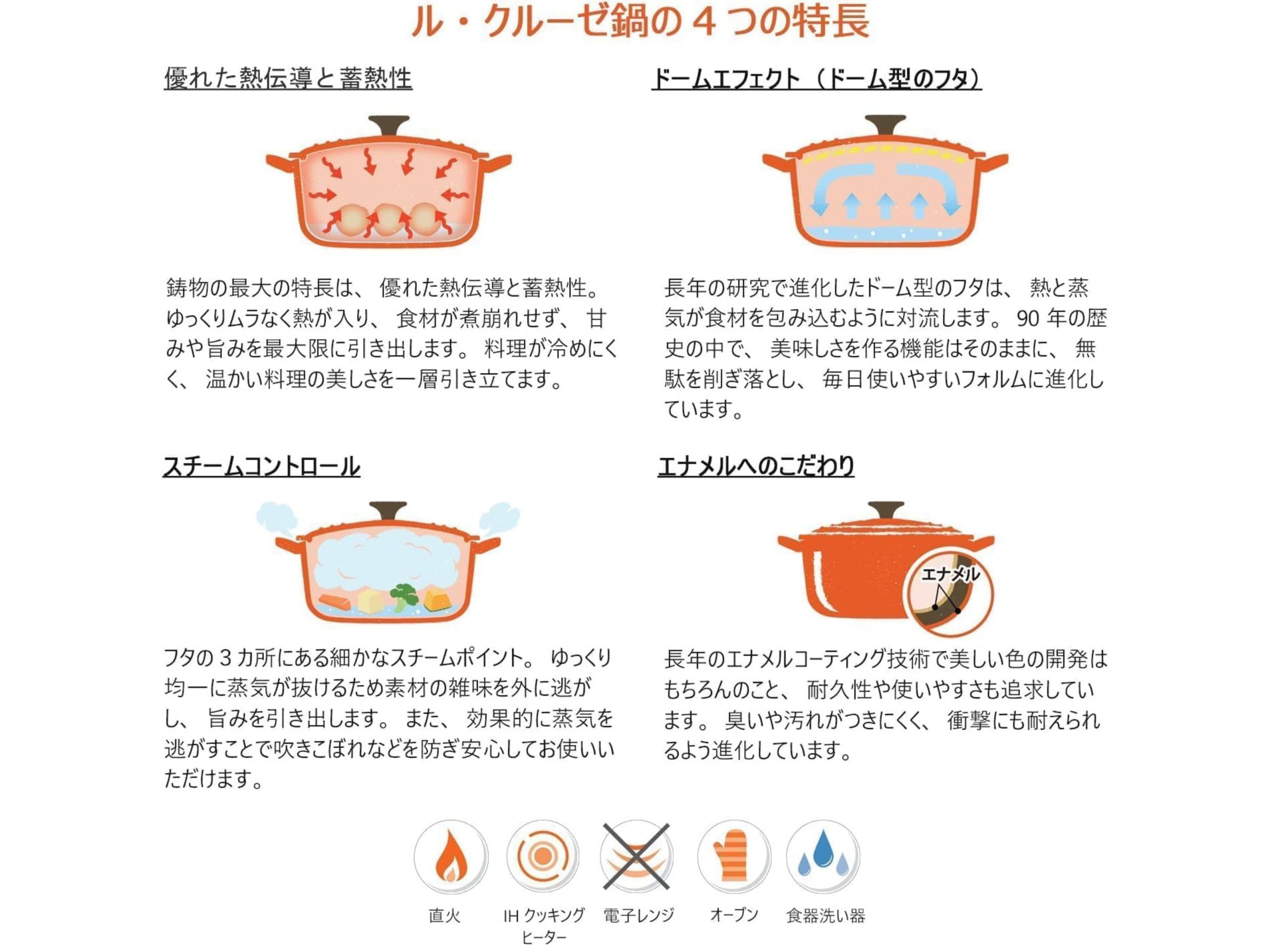 あえて言うなら、「カッコよさ」を求めるなら、より鋳物ちっくな見た目のストウブ(特にブラック)、「かわいい」のが好きならカラーバリエーションが多いル・クルーゼ……とか?