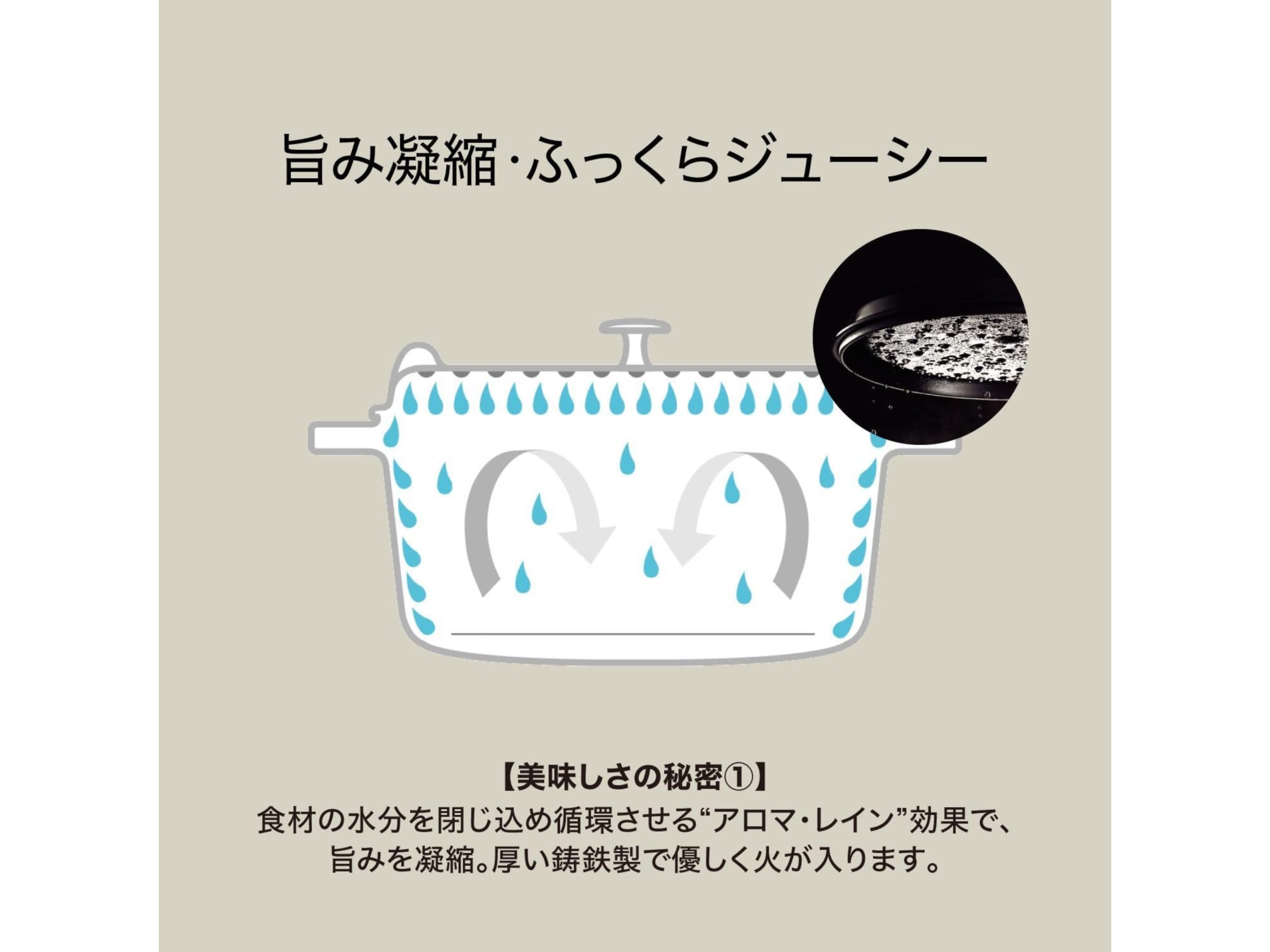 ・厚みがあるので、熱がゆっくりじっくり入る。食材の甘みやうまみを引き出す。保温力も高い