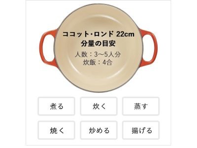 ル・クルーゼの代表的なモデル「ココット・ロンド」の 22cm。人気のチェリーレッド色やオレンジ色が30%超OFF中です!