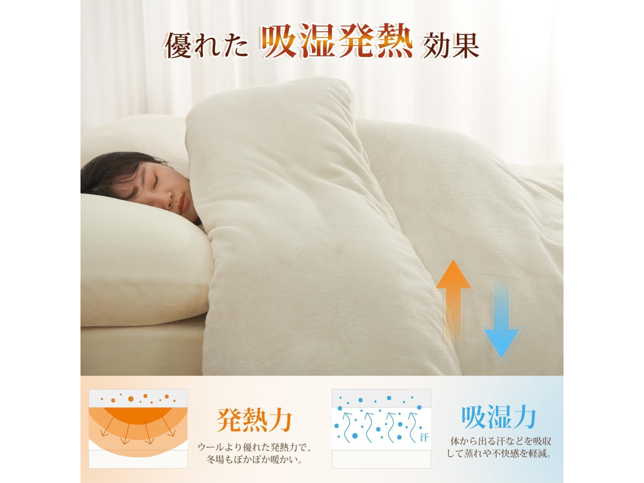 なめらかな肌触りは、まるでベルベット♪ 発熱&吸湿効果のあるフランネル素材の「掛け布団カバー」。あたたかいだけでなく、洗ったあと乾きやすいのがポイント