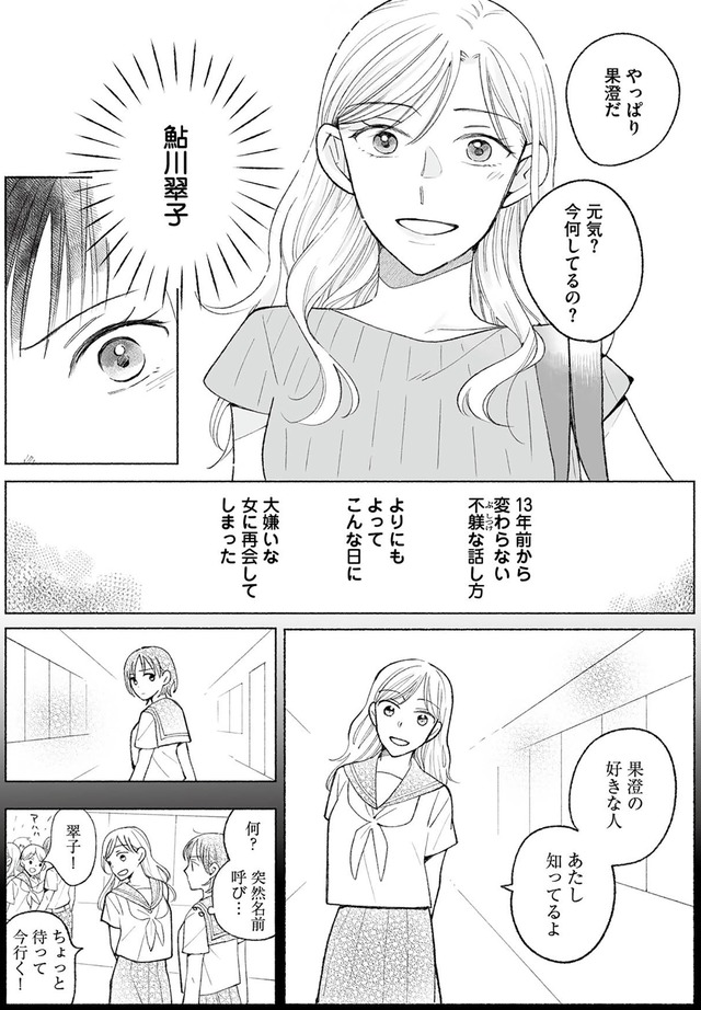中学時代、想いを寄せていた男子を翠子に奪われた果澄は、大人になって彼女と再会する。