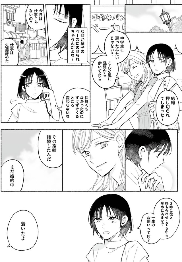 婚約者の裏切りで婚約破棄した果澄と、離婚したばかりの翠子。人生を模索するふたりだが、友情は成立するのか――!?