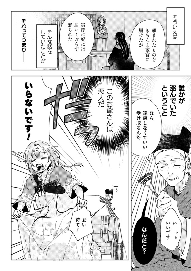 しかし火事が起きて店は消失。食堂の常連で後宮に仕える美しい青年、陽伊鞘に救われるが、彼の頼みで後宮付きの薬膳医になることに。