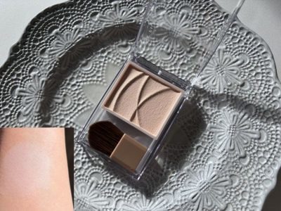 これまでチークをしっかり塗っていた人には、少し物足りない仕上がりかもしれません。けれど、よく鏡を見てみると、「いつもより肌がキレイに見える」と思わせる、まさに名脇役。本当にさりげない血色感が自前の血色と相まって顔色をよく見せ、ライトブルーが肌に透明感とツヤ感を添えてくれます。