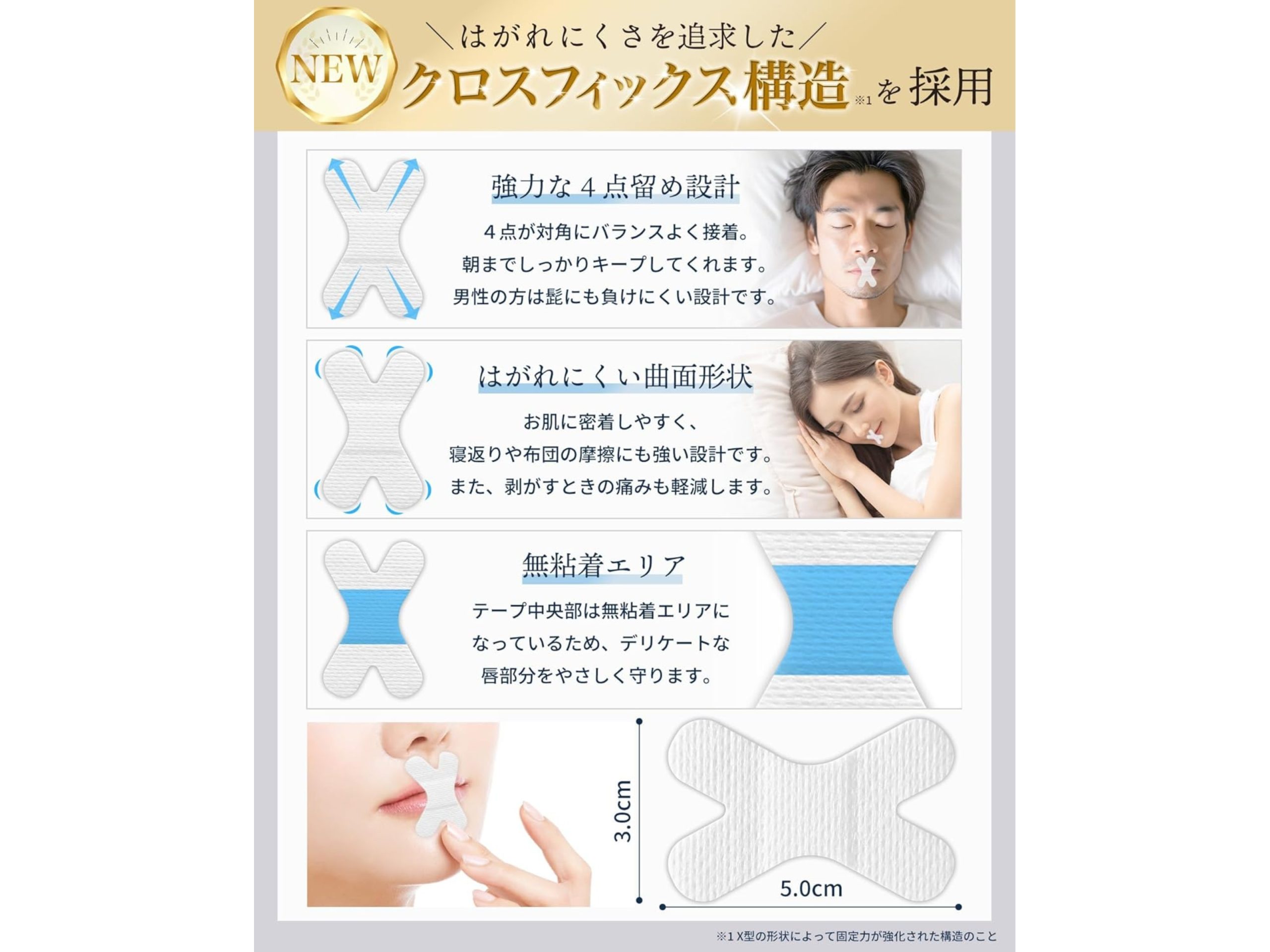 【口閉じテープ】Amazonの「いびき軽減グッズ」カテゴリで1位の人気商品! テープで口をふさいで鼻呼吸へ誘導し、安眠をサポート