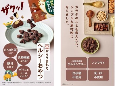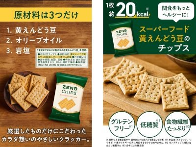 甘い系おつまみならコレ! カカオ・キャラメル・メープル味のアソートタイプ。大人気の「ZENBブレッド」と同じ、スーパーフード「黄えんどう豆」を使用し グルテンフリー