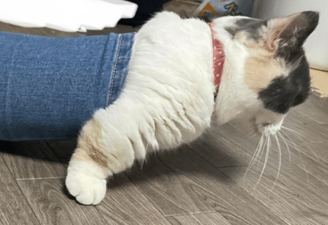 ▶保護猫を飼う飼い主 猫がゴロゴロしていると⇒まさかの状態に「猫クレープ」「自分で包まった」