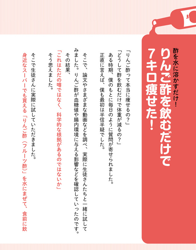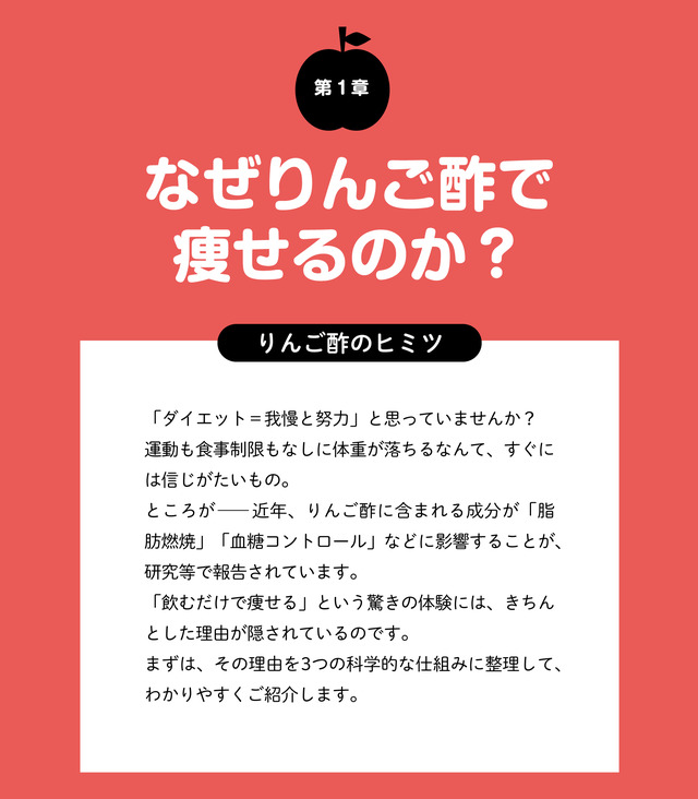 ※本記事は、ダイエット講師・嶋田壱成、監修・平松類(医学療法士)の書籍『りんご酢飲むだけで痩せていく ご飯もお酒もガマンなし』から一部抜粋・編集しました。