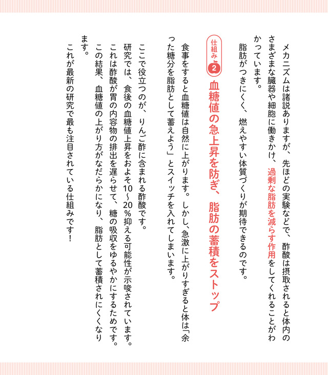 りんご酢は、脂肪の蓄積をストップ、血糖値の急上昇を防ぎます。