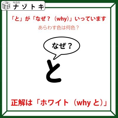 つまり、「ホワイ」と「と」がいっている、「ホワイ」「と」、そうです!「ホワイト」です!正解は「ホワイト」つまり「白」でした。
