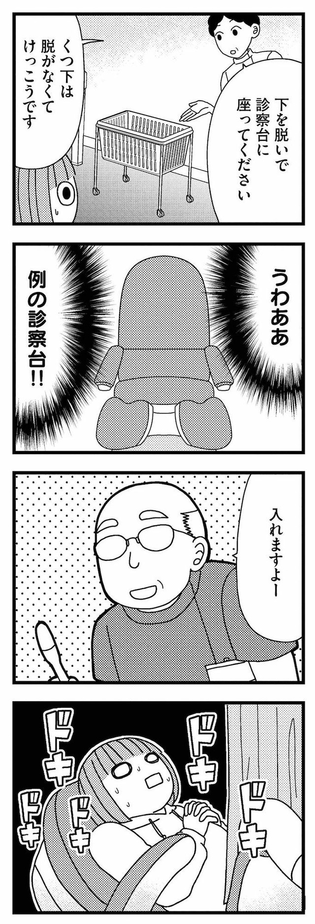 ついに産婦人科を初受診。「生理痛がひどい」と先生に症状を伝えると、診察台に座ることに!【子宮がヤバイことになりました。 #4】