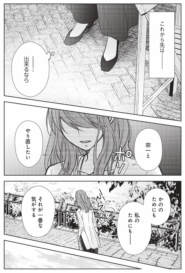 一方、不倫をシタ結果、離婚となった宗一の元妻「実奈子」は、元夫への想いを断ち切れず、娘を口実に、少しずつ距離を縮めていく――。