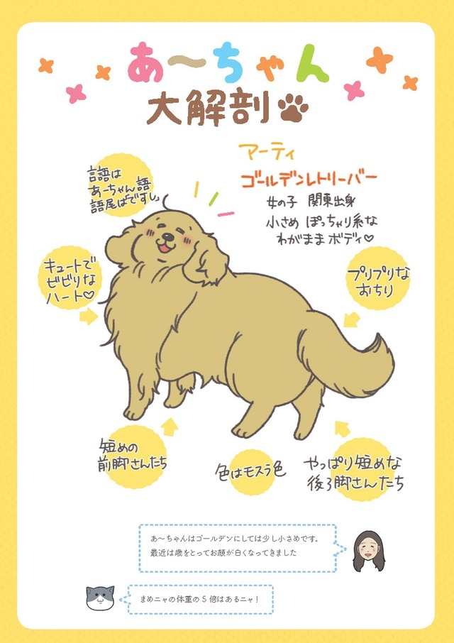 「ですし!」が口癖のゴールデンレトリーバー・アーティと、いつもイライラ怒ってばかりなのに家族思いなハチワレ猫・まめ。