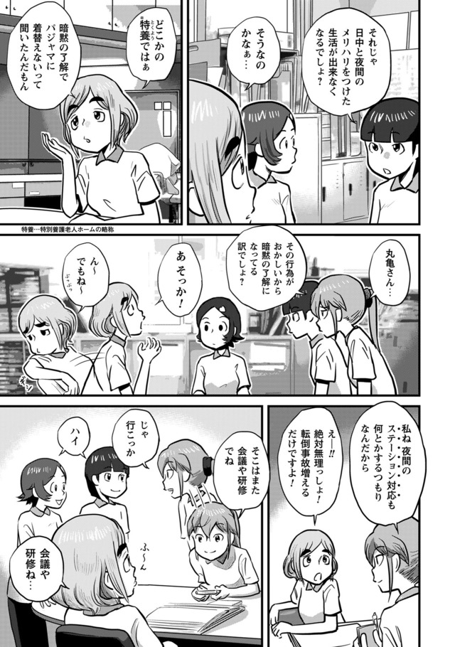 新人・鬼岡と、彼女の教育係となった熊本。そこに待ち受けている理想と実態。抗いながら、揉まれながら、鬼岡と熊本は入所者に寄り添い「明日」を紡いでいく。