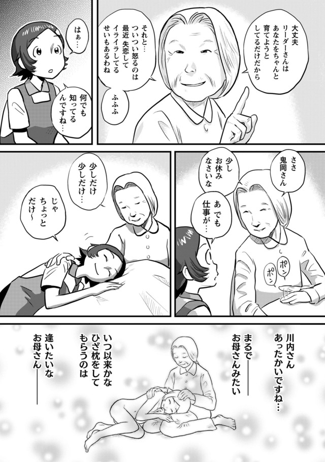 新人・鬼岡と、彼女の教育係となった熊本。そこに待ち受けている理想と実態。抗いながら、揉まれながら、鬼岡と熊本は入所者に寄り添い「明日」を紡いでいく。