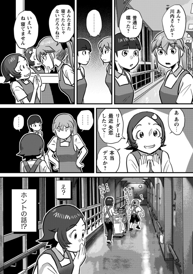 新人・鬼岡と、彼女の教育係となった熊本。そこに待ち受けている理想と実態。抗いながら、揉まれながら、鬼岡と熊本は入所者に寄り添い「明日」を紡いでいく。