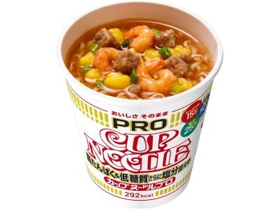 爆売れ中「高たんぱく&低糖質」なカップ麺シリーズ「カップヌードルPRO」の中で、最も低糖質なのがコレ。通常タイプよりも食物繊維たっぷり!しかも塩分25%OFF
