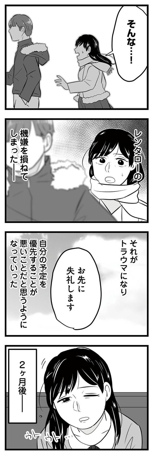 デートに遅刻して彼の機嫌を損ねてしまう。彼に嫌われたくない一心で無理した結果…【モラクズ男との共依存恋愛から抜け出せた話 #3】