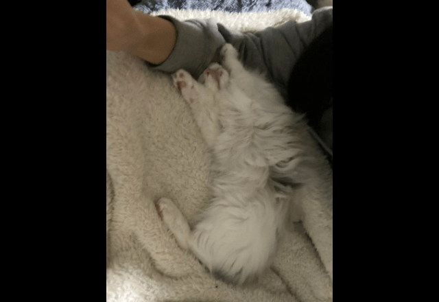 ところが、お迎えから1週間が経ったある日、ふと見ると子猫が床でお腹をおおっぴろげにして豪快に熟睡していたのです。