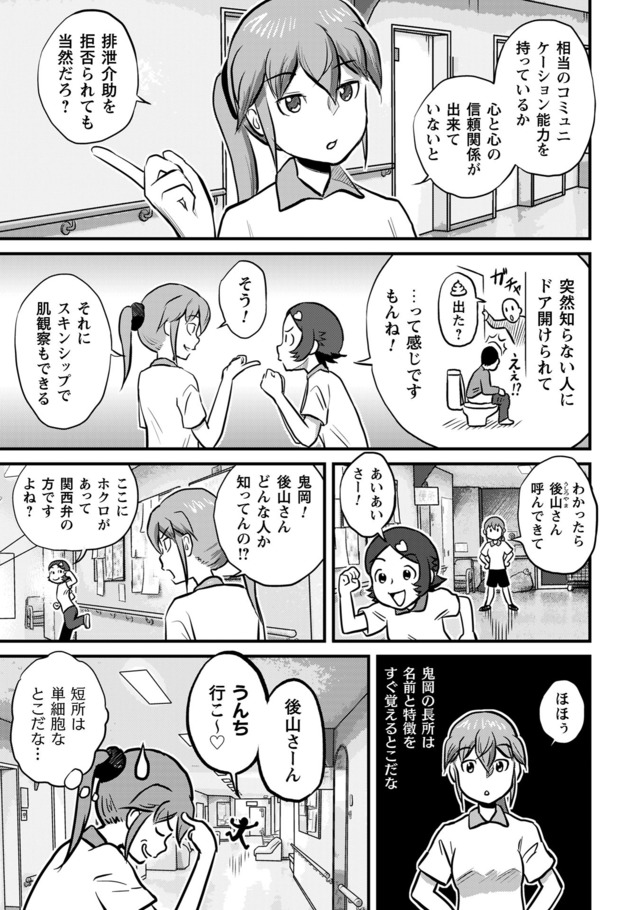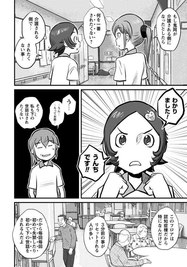 新人・鬼岡と、彼女の教育係となった熊本。そこに待ち受けている理想と実態。抗いながら、揉まれながら、鬼岡と熊本は入所者に寄り添い「明日」を紡いでいく。