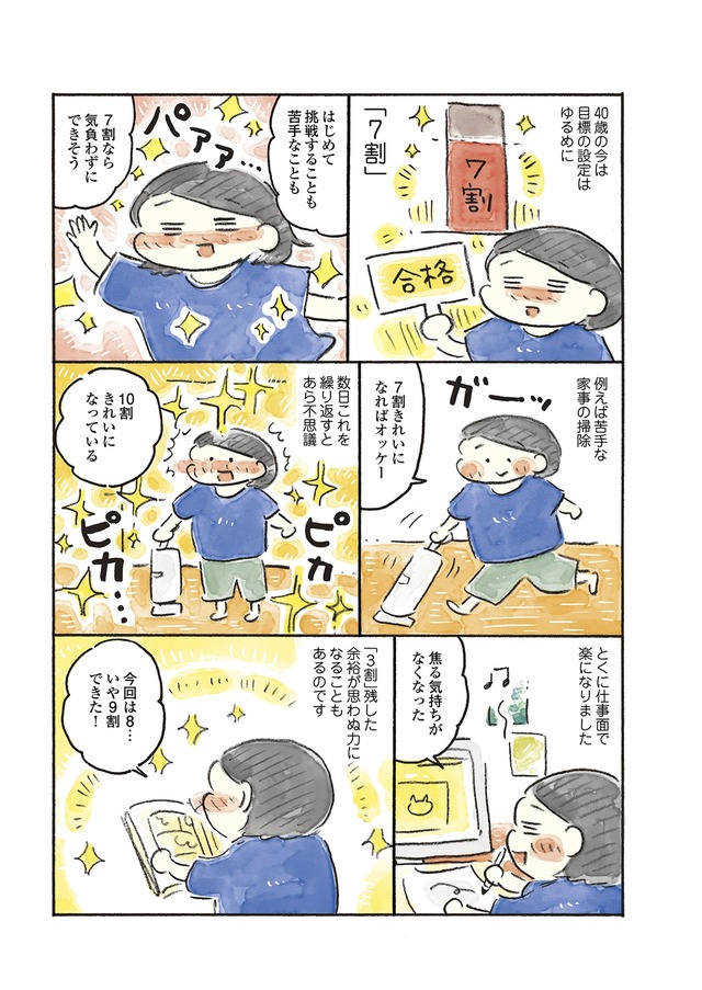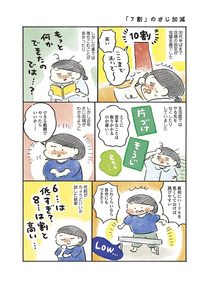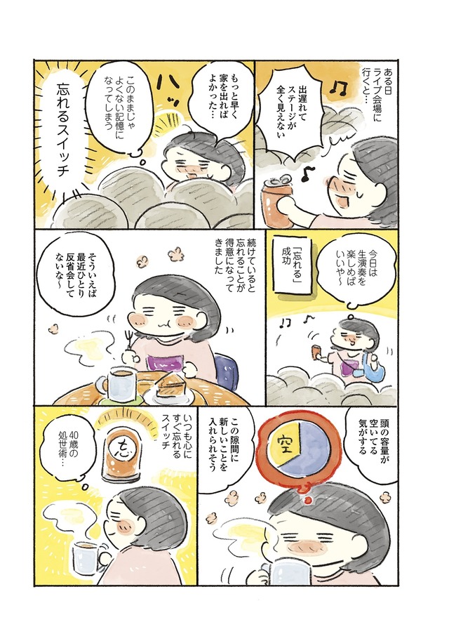 赤いケトルを買ったり、黒縁のメガネやキャップでおしゃれを楽しんでみたり、「すぐ忘れるスイッチ」を入れて嫌なことを忘れたり、目標設定をゆるめにしたり…。