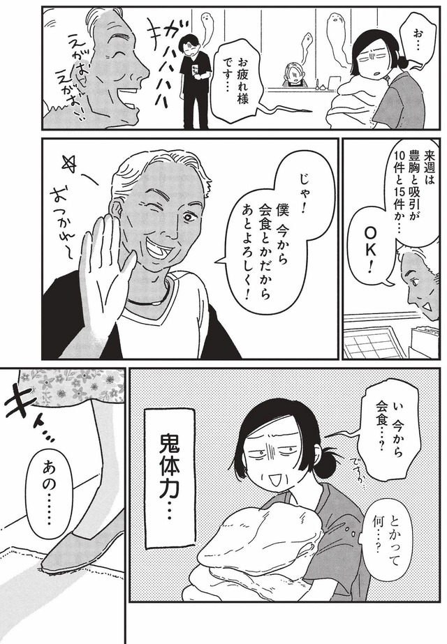 「社割で美容代がお得になる」という甘い言葉に惹かれて働き始めたものの、待っていたのは顔面ギプス姿の先輩や、アニメキャラの顔を目指す患者、社長が連れてくる大量のキャバ嬢たち……。