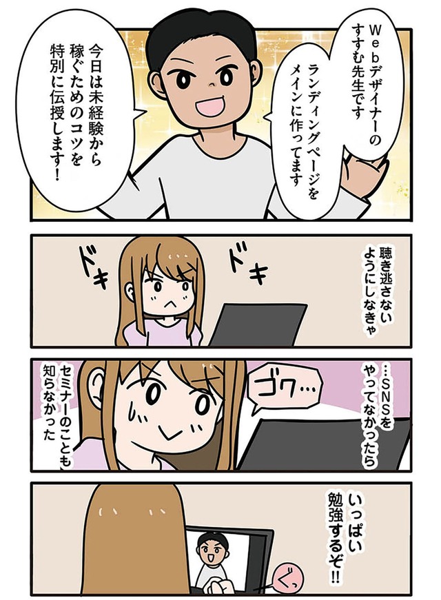 未経験でも稼げるようになる? 悩みに悩んだ結果、思い切ってセミナーに申し込む【ブラック企業で闇落ちしてWebデザイナーを目指したけれど、キラキラ詐欺に騙された話 #7】 | NewsCafe