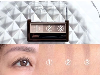 ノーズシャドウを含む3色のアイブロウパウダーから新色が1色登場します。既存色が、「01 キャラメルブラウン」「02 ナチュラルブラウン」と黄み寄りのカラーだったのに対し、青み寄りのベージュとグレージュ2色の組み合わせ。