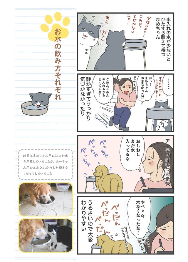 「ですし!」が口癖のゴールデンレトリーバー・アーティと、いつもイライラ怒ってばかりなのに家族思いなハチワレ猫・まめ。