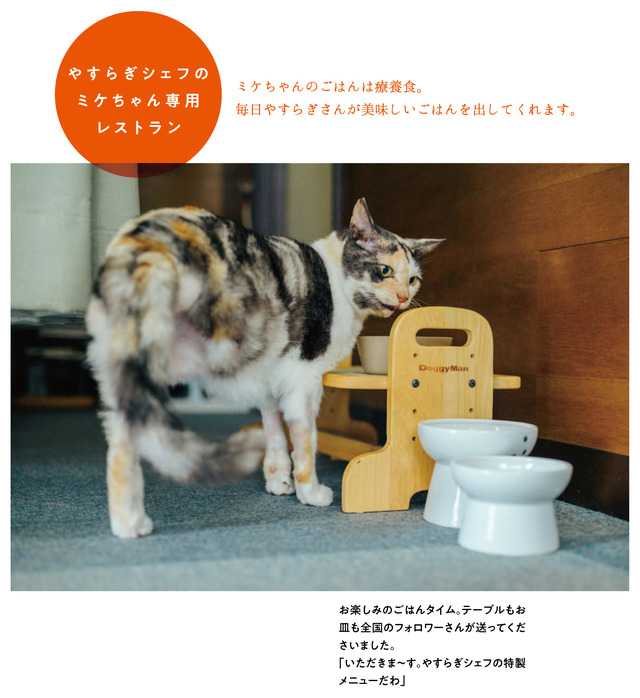 オーナーのやすらぎさんが「もしもミケちゃんがおしゃべりできたなら」という思いではじめたミケちゃんのSNSは瞬く間に大人気に!