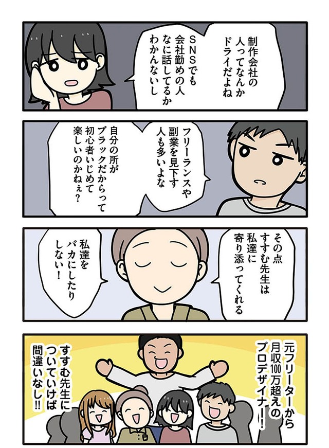 成功しているインフルエンサーの発信に胸を膨らませてオンラインスクールに入るものの、そこで待っていたのは怪しすぎる指導と不安だらけの日々。