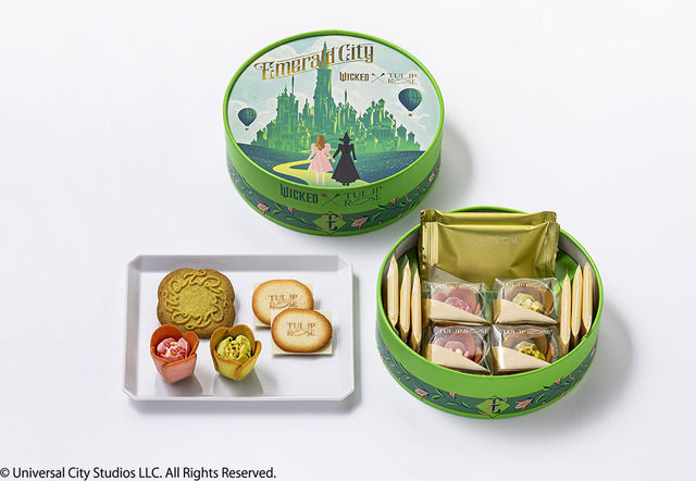 「チューリップローズ <WICKED>」は、グリンダを思わせるピンクが印象的なスペシャル缶。春限定のストロベリーバターと、映画とのコラボ限定ピスタチオバターの2味の詰合せ。