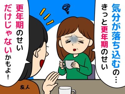 「最近、気持ちが落ち込む気がする」この原因が更年期なのか、前述の病気なのかで、対応が異なります。どういう原因で落ち込んでいるのか、見分ける方法を紹介します。