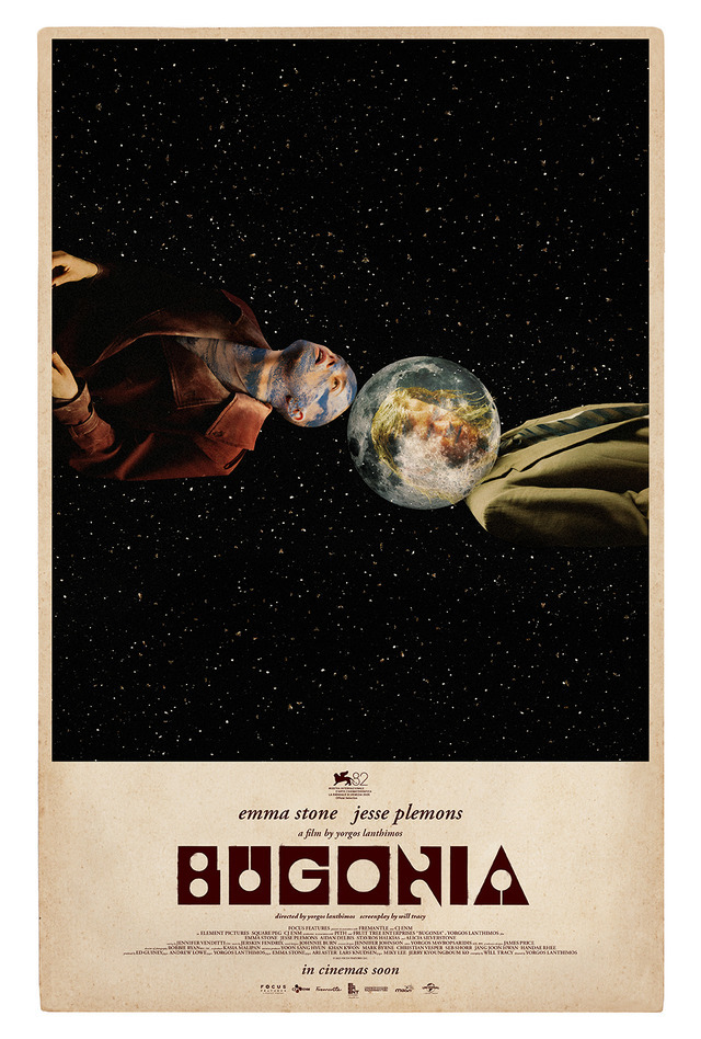 この度公開されたアートポスターには、劇中のキーワードが散りばめられながらも、その意味はまったく予測不能。ミシェル(エマ・ストーン)の顔を埋め尽くす「ミツバチ」の羽の上をシュールに自転車で走るテディ(ジェシー・プレモンス)に、宇宙に漂う「地球」模様のミシェルと「地球」にすっぽりはまったテディ。さらに、羽を唇に見立てた一枚や、月の満ち欠けと鎖の円環など、この前代未聞の誘拐劇はどこへ向かい、ポスターに込められたパズルのピースはどう繋がるのか…。劇場でのみ明らかになる物語の全貌と衝撃的な真実をぜひその目で確かめてほしい。