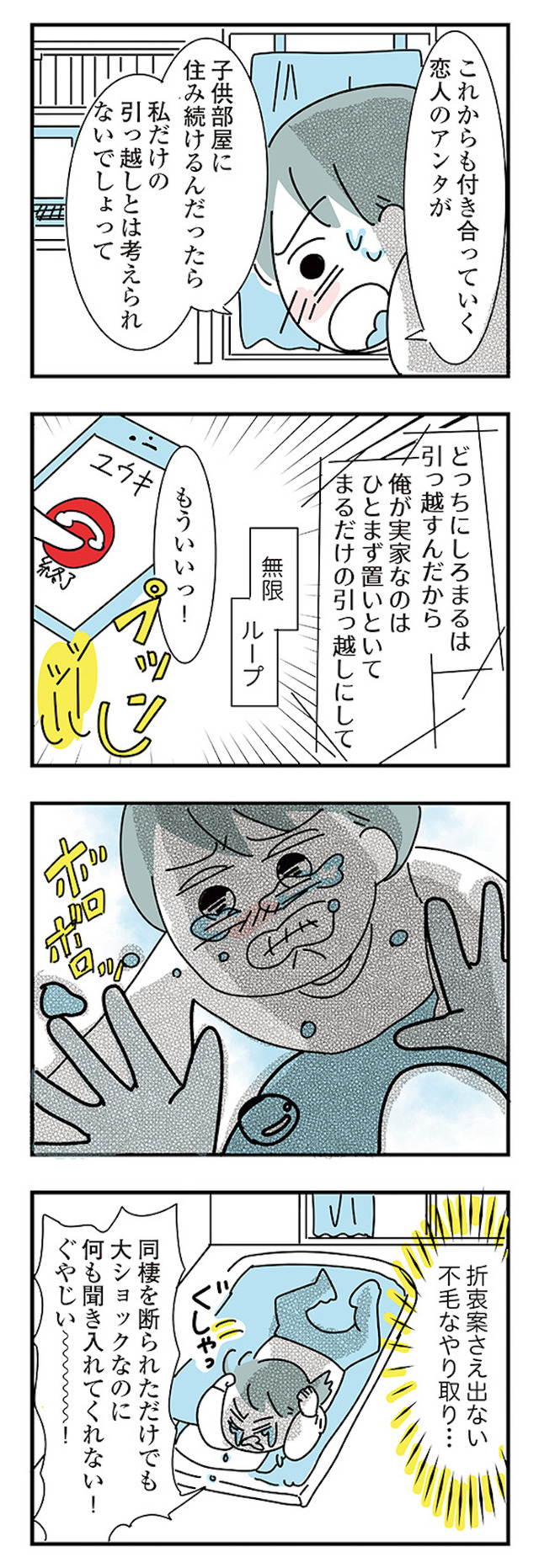 「後悔したくない」が口癖の彼氏。優柔不断な恋人に振り回されて…【子ども部屋おじさんの彼と一緒に住みたい私の100日間戦争 #3】
