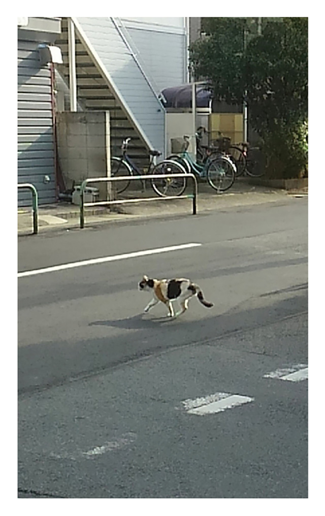 道を渡るミケちゃんを見て