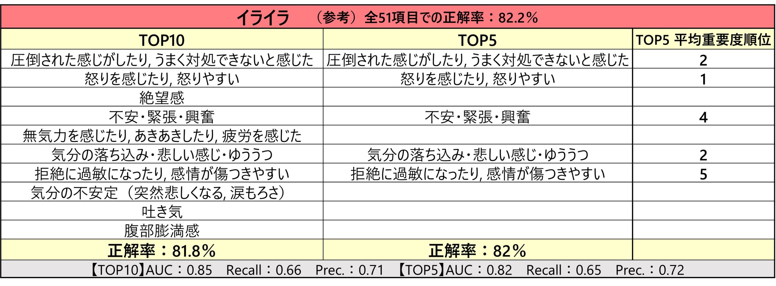 「いっぽうで、落ち込みや不安といったものはそのまま変化がありません。イライラの項目であれば上位は怒り系ですが、下の方には不安や傷つきやすさといった、落ち込み・不安と似たような症状が出てきていたりします」