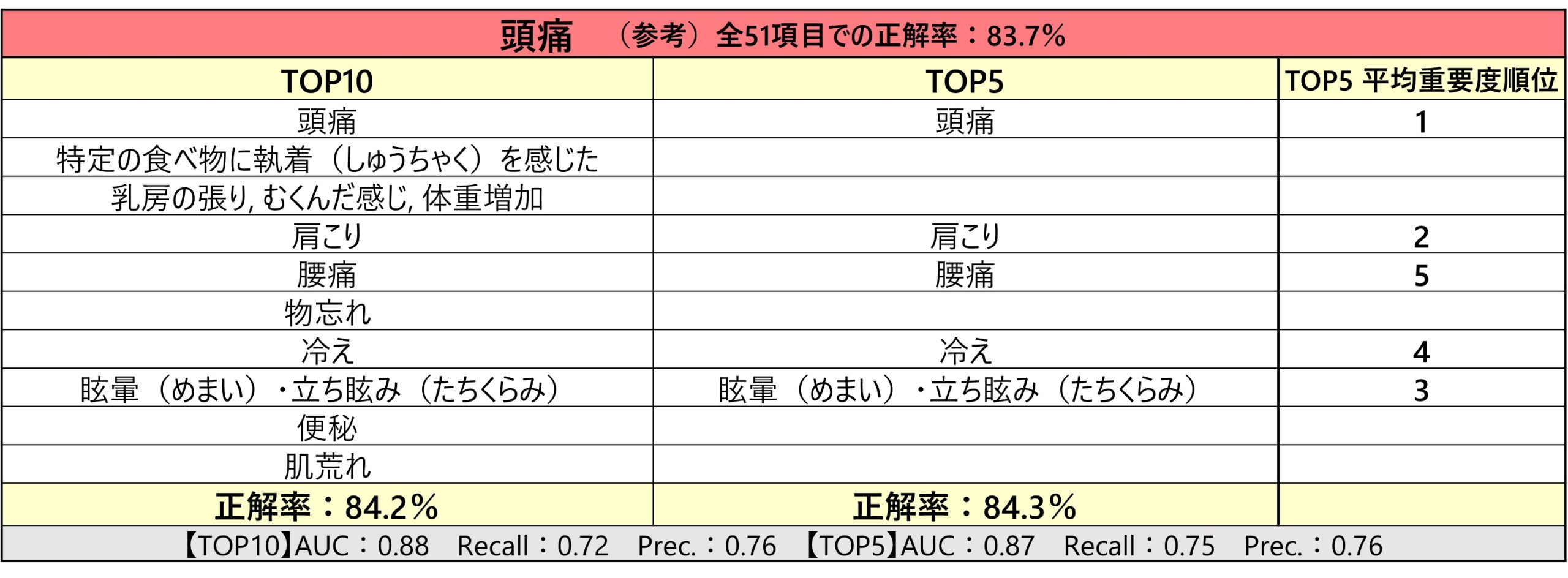 「イライラのほか、頭痛も、重要度で1位に類似の項目が入りました。イライラならば『怒り』系でしたが、頭痛ならば『頭痛』というように、関連した項目がトップに上がってきやすいのです」