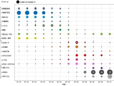 1年前に開催された第39回の同学術集会では、同じく小林製薬のチームが『命の母』チャットボットのデータ解析を行い、「年齢ごとに不定愁訴が変化していく」(図1)「イライラの原因も変化していく」(図2)ことを突き止めた論文が賞を受賞しています。林さんの研究はその後継なのでしょうか?