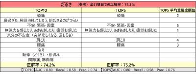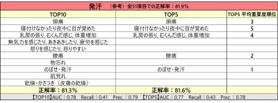 「ただし、例えば『発汗』の項目の2番目に『腰痛』が来ていたりと、少し違う系統に思える指標も含まれてきています」