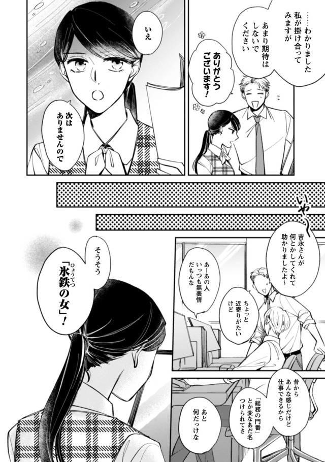 クールかつ事務的に仕事をこなす姿から社内で【氷鉄の女】と呼ばれるOLの吉永奈央。ある日、奈央は先輩社員たちが自分を落とせるか賭けをしている場面を目撃してしまう。そこには奈央が長年片思いをしていた同期の里村もいて…!?