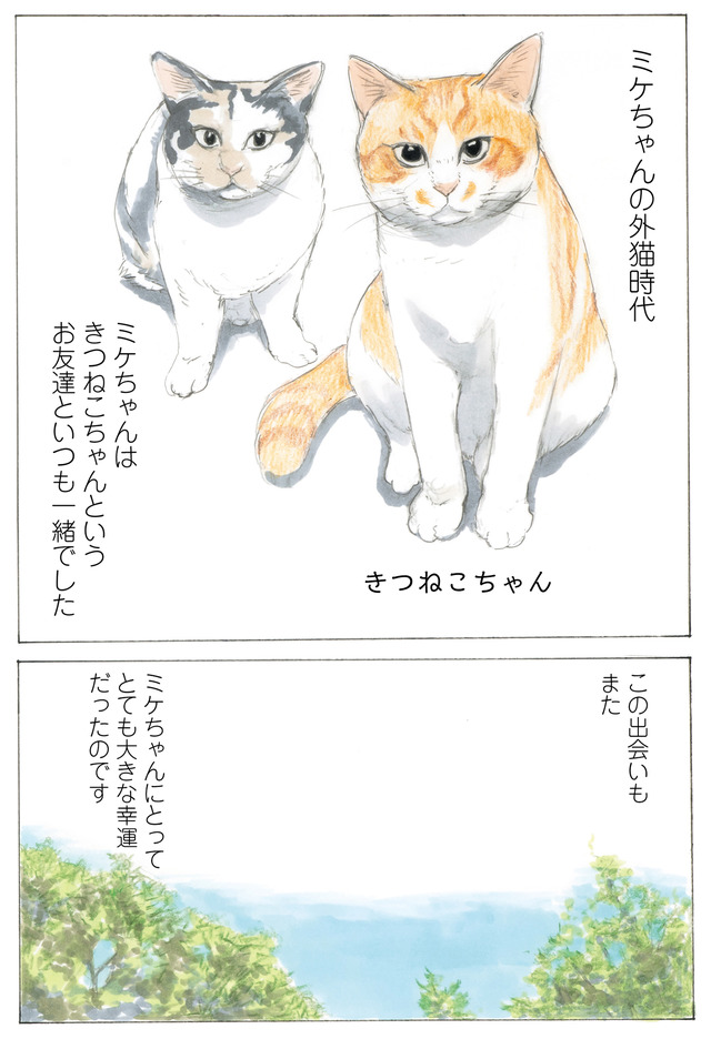 ミケちゃん「きつねこちゃん元気でね。お互いずっとのお家で幸せに暮らそうね」