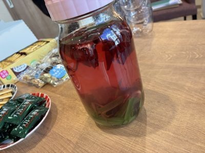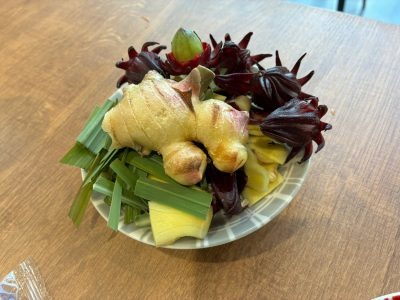 オリガさんは自宅で育てた新鮮なレモングラス、道の駅で購入したウコン、ローゼルなど、沖縄ならではのハーブを持参。ハーブドリンクを作り、振舞ってくださいました。