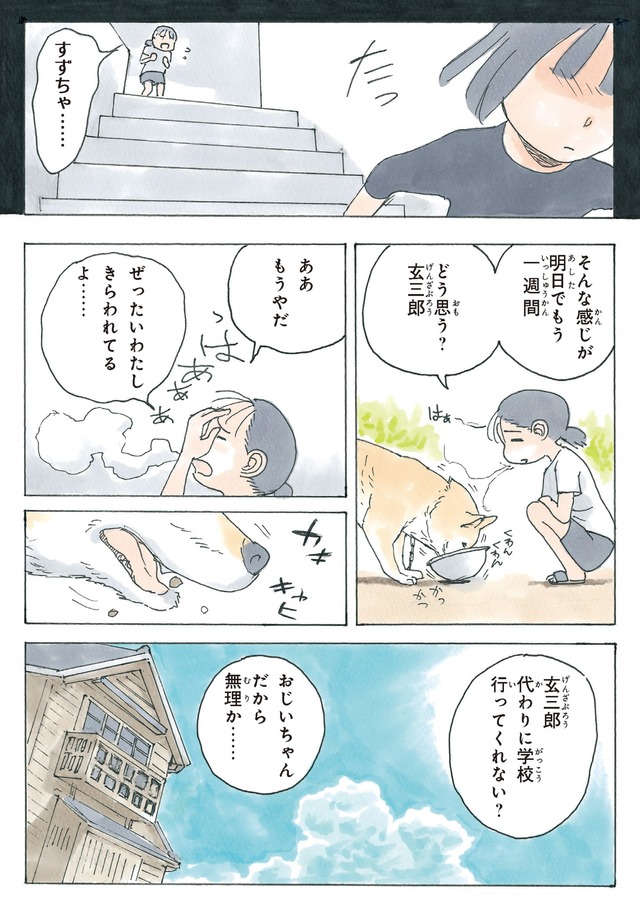 半年前ゲリラ豪雨の日に、ふらりとやってきたアカトラの猫に「マドレーヌ」と名付けたかのこちゃん。そしてマドレーヌ夫人は、老犬の柴犬・玄三郎の妻になる!?
